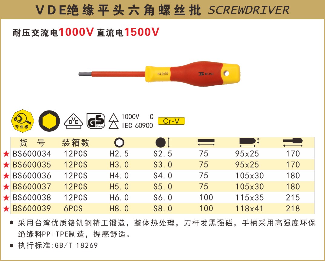 VDE绝缘平头六角螺丝批