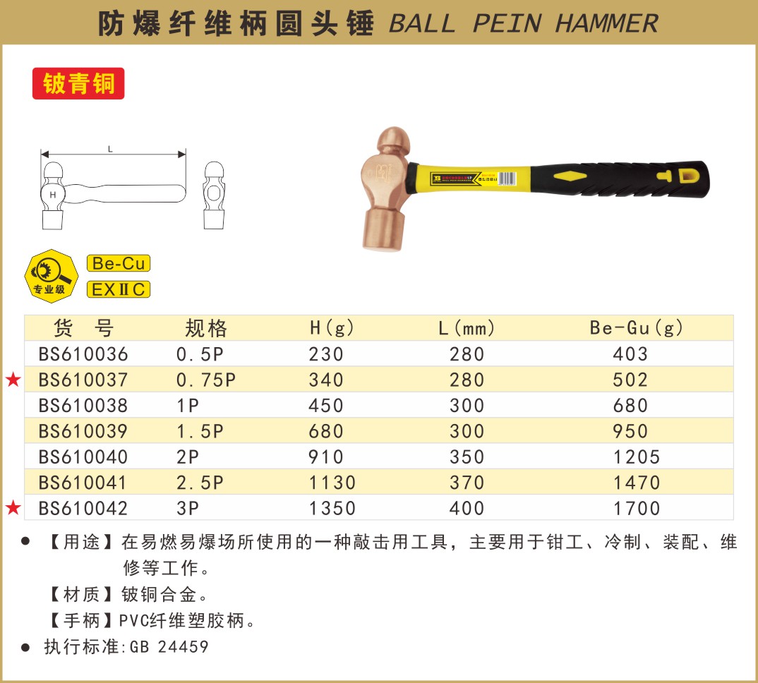 首页 波斯产品 防爆工具 防爆纤维柄圆头锤